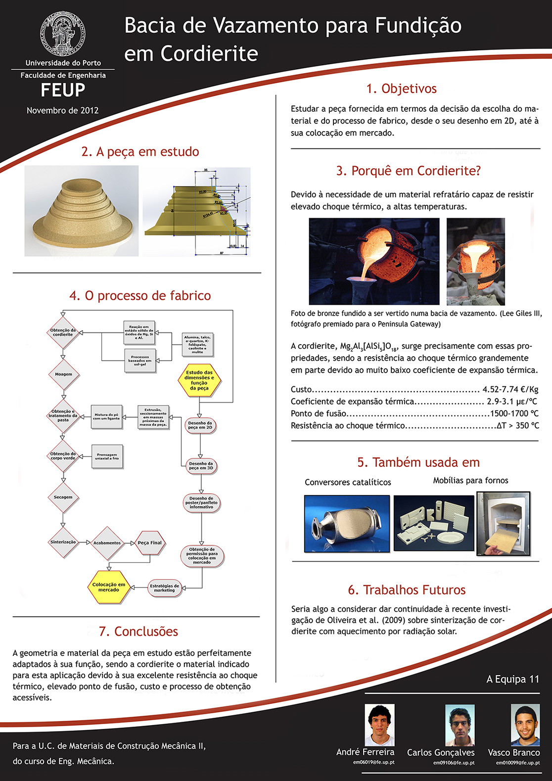 Poster, trabalho 2: "Bacia de Vazamento para Fundição em Cordierite" (vencedor do prémio de melhor poster de MCM2, 2012/13)
